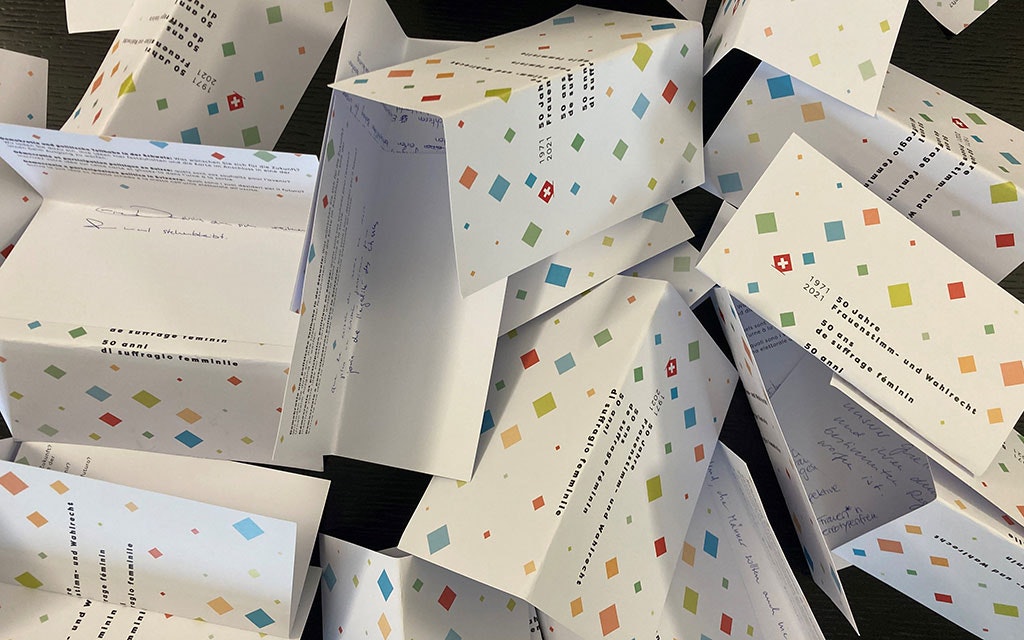 An der offiziellen Feier zu 50 Jahre Frauenstimm- und Wahlrecht am 2. September 2021 wurden die rund 150 Gäste dazu eingeladen, ihre Wünsche und Visionen für die Zukunft unserer Demokratie und der politischen Teilhabe festzuhalten und in eine Urne zu werfen. Wie die Auswertung der Wunschkarten zeigt, gibt vor allem das heutige politische Klima zu denken. "Mehr miteinander statt gegeneinander" oder "wieder mehr Dialog", lauten etwa Zukunftsvisionen. Als verbreitetes Anliegen stellt sich weiter die Erhöhung der politischen Partizipation heraus. Um dies zu erreichen, wünschen sich die Gäste zum Beispiel "Staatskunde bereits in der Primarschule als Schulfach" oder die "bessere Vereinbarkeit von Familie, Beruf und Politik". Auch die Ausweitung der politischen Rechte, unter anderem in Form des Ausländerstimmrechts, wurde verschiedentlich gewünscht. Hier sind die meistgenannten Wünsche in Zusammenhang mit der Zukunft der Schweizer Demokratie und der politischen Teilhabe: