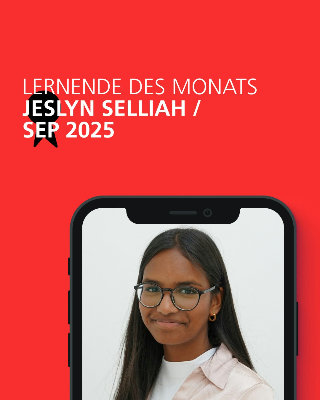 Lernende des Monats September ist Jeslyn Selliah, Kauffrau EFZ im 2. Lehrjahr.🥳🙌🏼