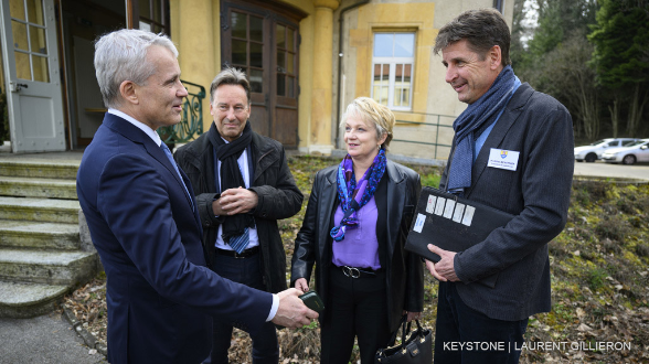 Le 2 septembre 2025, le conseiller fédéral Beat Jans et les membres du gouvernement bernois Christine Häsler, Christoph Ammann et Pierre Alain Schnegg ont visité le centre de formation de Bellelay destiné aux personnes du domaine de l’asile. Organisé comme un internat, ce centre mis en place dans l’ancienne abbaye propose une formation combinant cours de langue intensifs et préparation au diplôme d’auxiliaire de santé de la Croix-Rouge suisse. Le conseiller fédéral Beat Jans a pu se faire une idée sur place et recevoir des informations sur ce projet pionnier dans le domaine de l’intégration des personnes réfugiées.