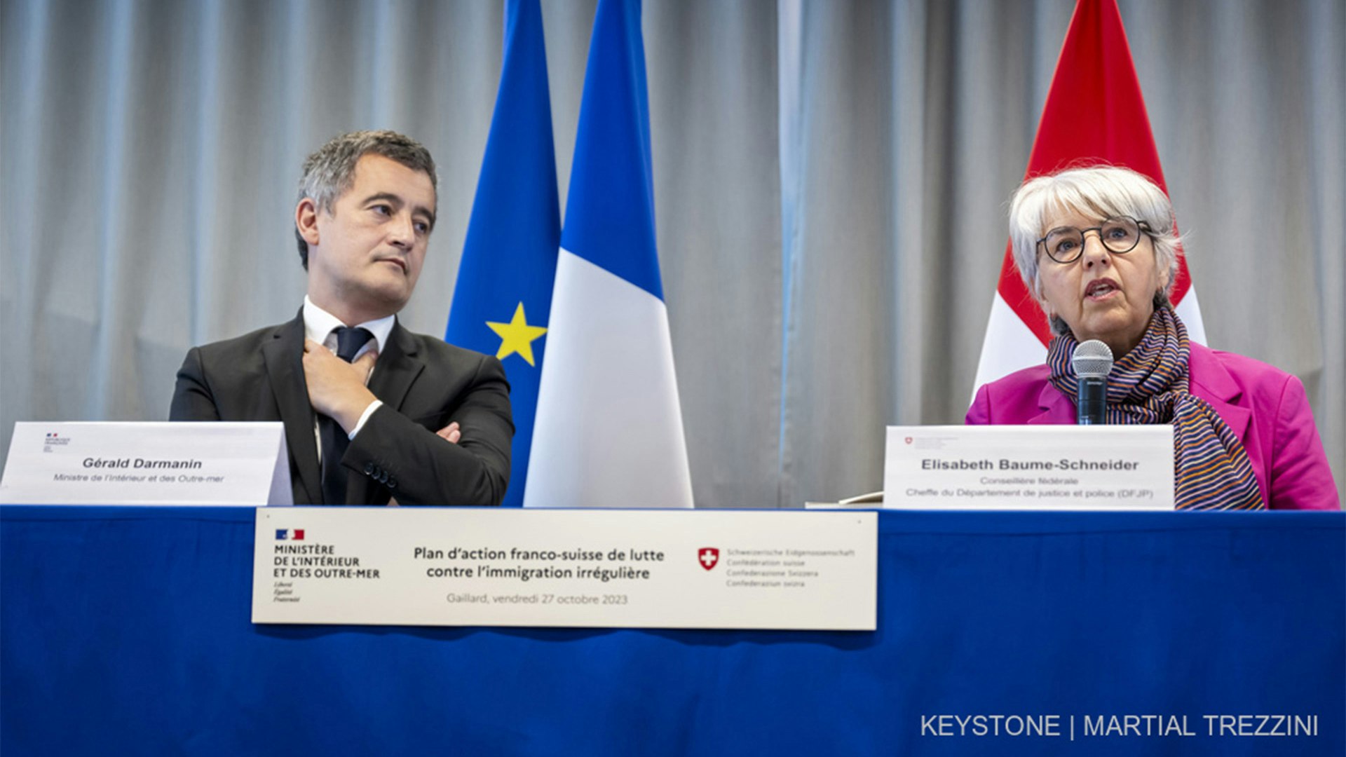 La Suisse et la France renforcent leur coopération dans la lutte contre les migrations secondaires et les passeurs. La conseillère fédérale Elisabeth Baume-Schneider et le ministre français de l’intérieur Gérald Darmanin se sont accordés sur un plan d’action en ce sens le 27 octobre 2023 à Thônex (GE). La France est, après l’Autriche et l’Allemagne en 2022, le troisième pays avec lequel la Suisse conclut un plan d’action de ce type.