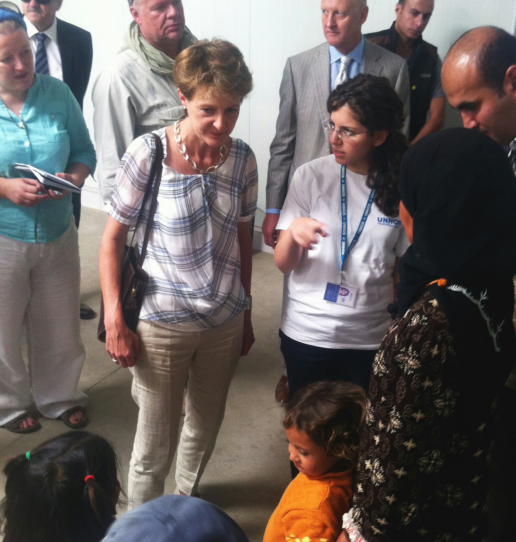 Jeudi, la conseillère fédérale a visité le camp de réfugiés de Zaatari, dans le nord du pays, que gère le Haut Commissariat des Nations Unies pour les réfugiés (HCR). Ouvert au milieu de l’année 2012, le camp accueille en ce moment près de 90 000 personnes, en grande partie des femmes, des enfants et des jeunes. Mme Sommaruga s’est ensuite fait une idée de la situation au centre d’accueil d’Al Sarhan, dans lequel le Comité international de la Croix-Rouge fournit une contribution dans le domaine de la santé. Après plus de trois ans de guerre en Syrie, près de 3 millions de réfugiés sont enregistrés dans la région, dont environ 600 000 en Jordanie, un pays qui compte 6,5 millions d’habitants. Plus de 80 % des réfugiés ne vivent pas dans des camps mais dans différentes villes et communes, principalement dans le nord du pays. Dans certaines communes, le nombre d’habitants a doublé depuis le début du conflit en Syrie en 2011.