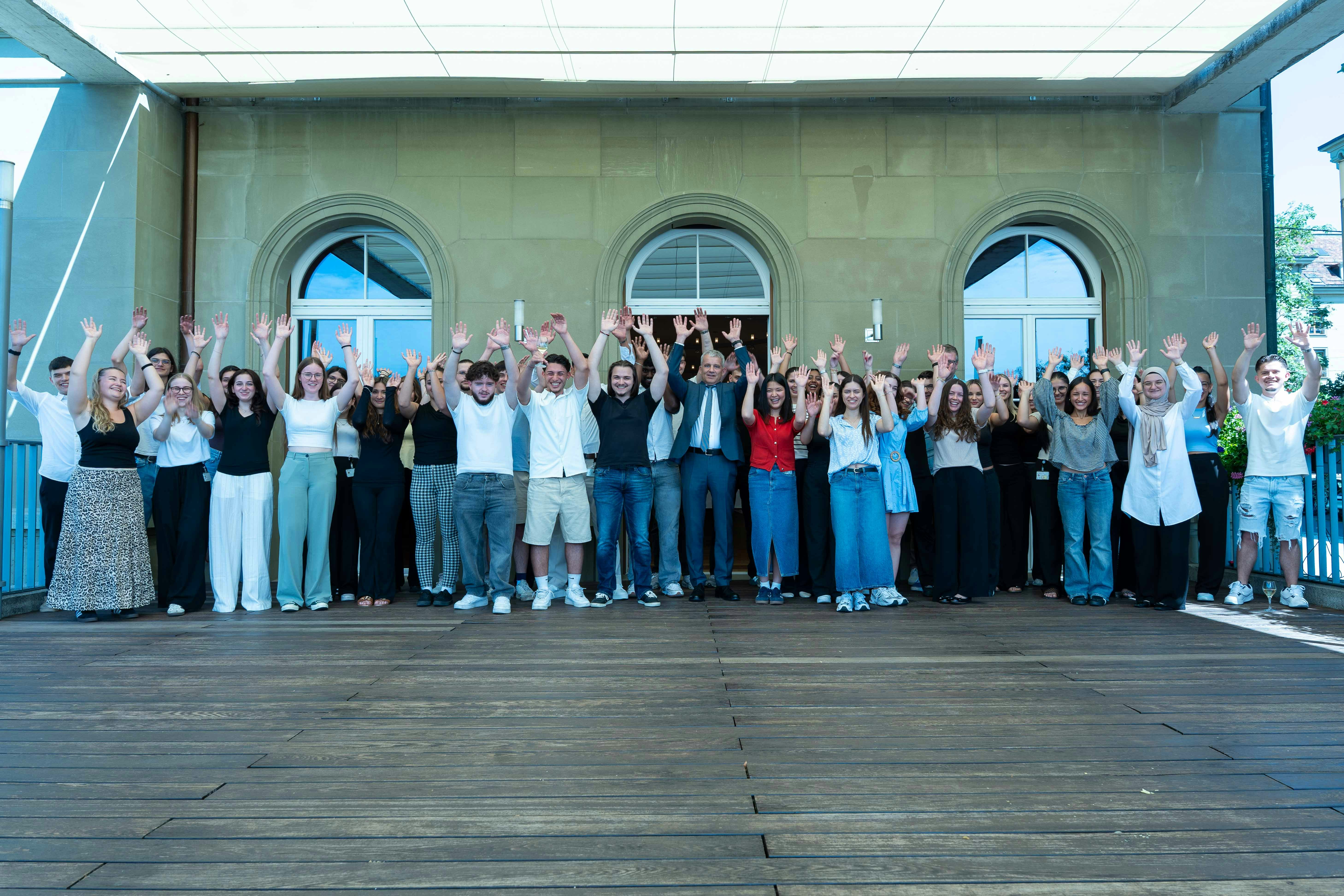Per festeggiare hanno potuto godersi insieme al Consigliere federale Beat Jans un meritato aperitivo 🥂 – una bella conclusione di una tappa importante della vita.
