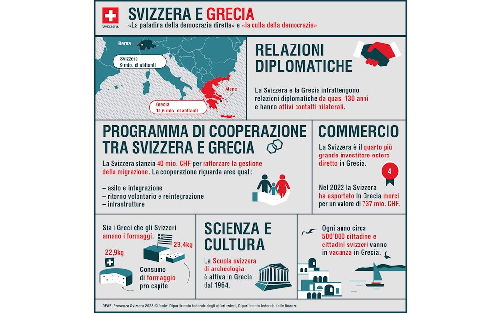 Il 1° e il 2 novembre 2023 la consigliera federale Elisabeth Baume-Schneider si è recata in Grecia per una visita di lavoro incentrata sulle sfide legate alla migrazione, che il Paese alla frontiera esterna Schengen deve fronteggiare quotidianamente e che si ripercuotono sull’intero spazio Schengen, Svizzera compresa. Con questa visita il capo del Dipartimento federale di giustizia e polizia (DFGP) ha voluto ribadire l’impegno della Svizzera nel far fronte a queste sfide nel rispetto dei diritti umani. Ad Atene la Consigliera federale e il ministro greco per l’asilo e la migrazione Dimitris Kairidis hanno inaugurato un progetto rivolto ai rifugiati e ai richiedenti l’asilo e finanziato dalla Svizzera. Il viaggio si è concluso con la visita di alcune infrastrutture sull’isola di Lesbo.