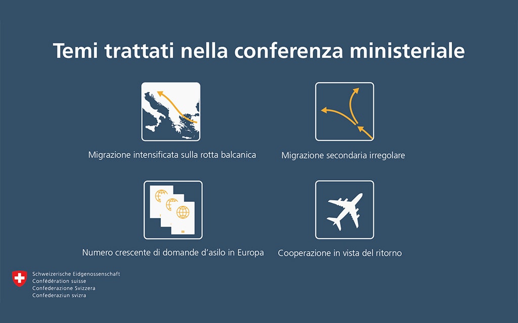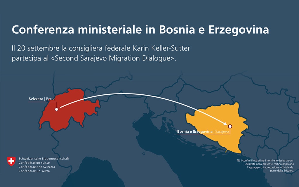 Il 20 settembre 2022 la consigliera federale Karin Keller-Sutter ha partecipato alla conferenza ministeriale "Second Sarajevo Migration Dialogue" a Sarajevo. Al centro dei colloqui la migrazione secondaria irregolare sulla rotta balcanica occidentale, che permane elevata. L’obiettivo è rafforzare la collaborazione reciproca fra gli Stati balcanici occidentali e sostenerli nel rimpatrio e nella reintegrazione dei migranti nel loro Paese d’origine.