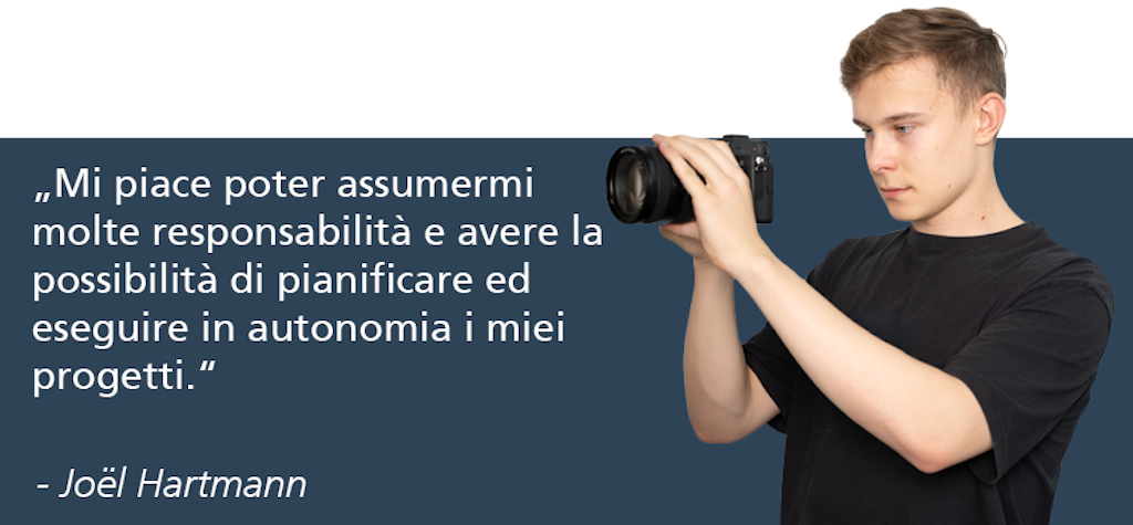 La formazione di quattro anni comprende un anno di formazione di base e riguarda principalmente temi legati alla creatività e al design in ambito multimediale. Prepari e curi diversi progetti quali presentazioni, flyer, documenti e modelli; gestisci e rielabori le nostre pagine web, pianifichi e crei elementi visivi come messaggi video, animazioni e grafici.