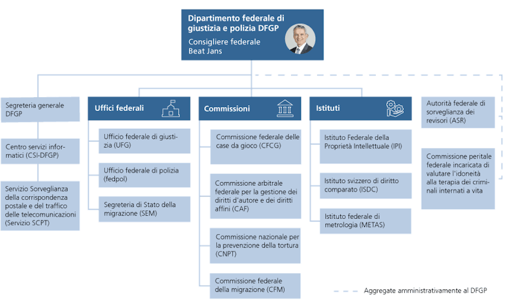 Uffici federali: Ufficio federale di giustizia (UFG), Ufficio federale di polizia (fedpol), Segreteria di Stato della migrazione (SEM)