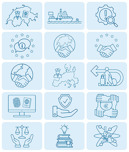 La SEM aggiorna costantemente l’elenco delle misure standard sulla base dei contributi delle autorità responsabili. Le misure sono raccolte e pubblicate nella tabella qui sotto del piano d’azione. I Cantoni e le autorità federali competenti in materia di gestione delle frontiere sono responsabili dell’attuazione e della gestione dei progetti annunciati. Riferiscono alla SEM su base periodica. Sia le misure chiave sia le misure standard contribuiranno in egual misura all’attuazione degli obiettivi strategici IBM III e costituiscono, insieme, il piano d’azione IBM.